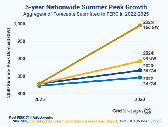 Grid Strategies reported that peak load growth ballooned in 2025 based upon data center demand, industrial and manufacturing loads, and EV growth: