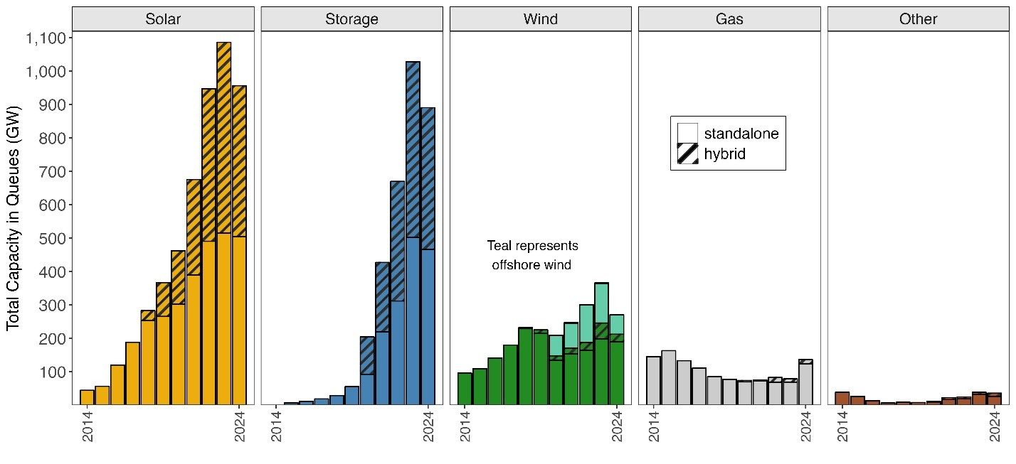 At the same time, interconnection backlog continues with the Lawrence Berkeley National Lab reporting 2,300GW of capacity seeking interconnection and Grid Strategies shows that congestion charges have increased from historical averages around $5B to over $10B in recent years.