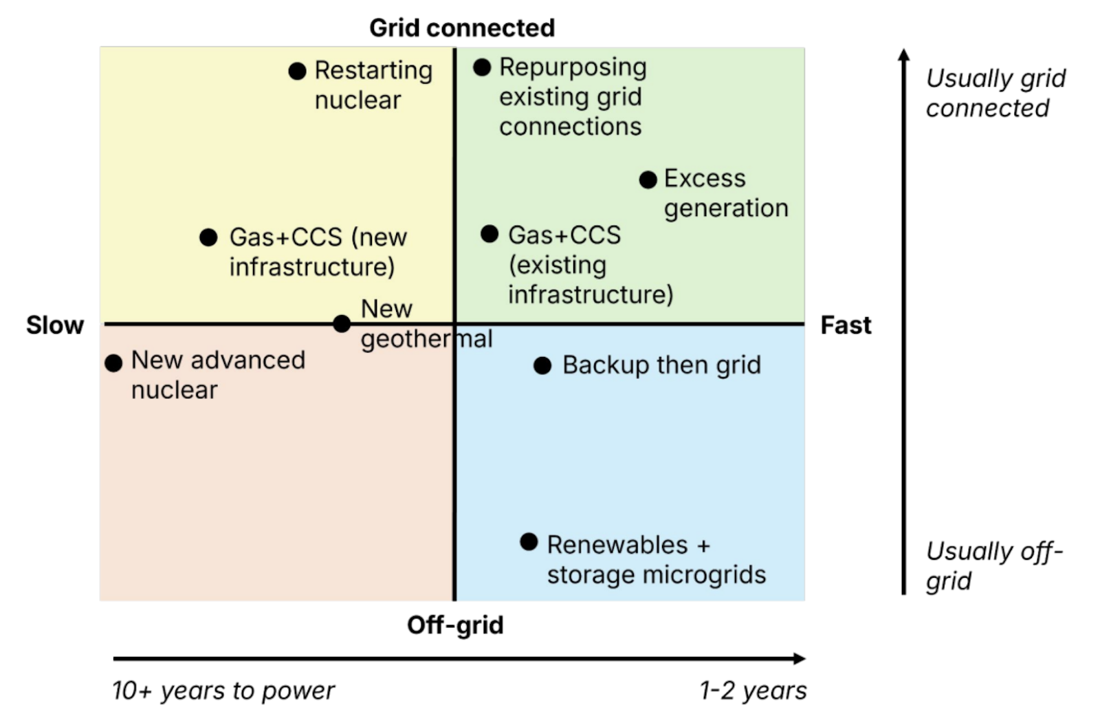 The below chart from Sightline Climate breaks down the different paths to power across speed and grid connectivity. The harsh reality is that every pathway faces significant implementation hurdles, and none can meet the AI energy challenge alone.